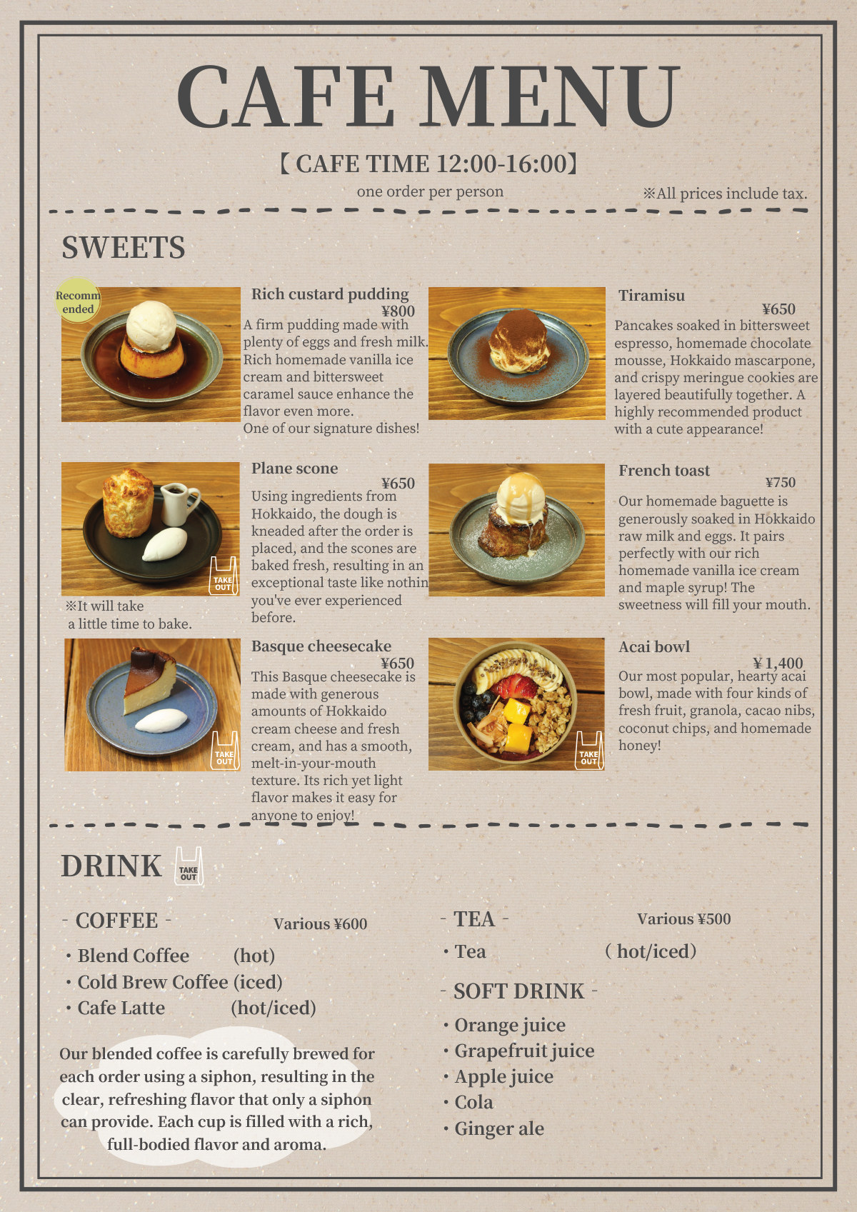 《cafetime menu 英語》